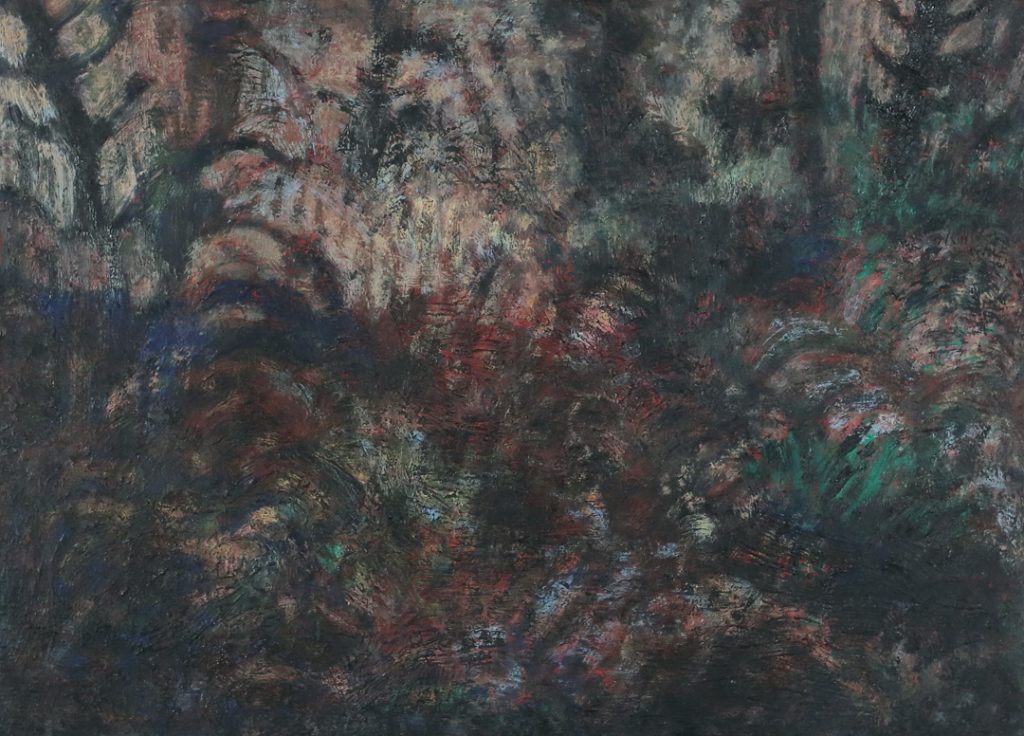 L’artiste délaisse la figuration pour embrasser une nouvelle direction qui tend vers l’abstraction. La peinture se nourrie d’une quête spirituelle entièrement dévolue à la nature, et s’attache à saisir les différentes lumières, l’essence, les substrats et les forces mouvantes.